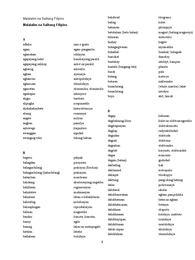 Malalalim Na Salitang Tagalog At Kahulugan