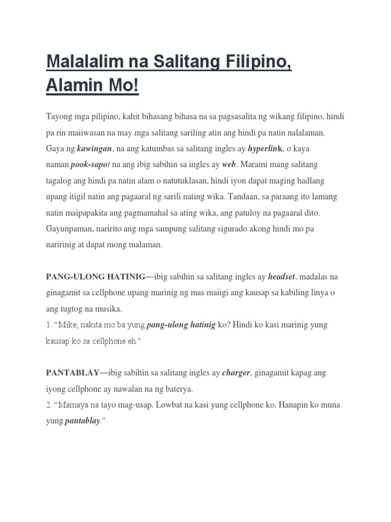 Libo-libong salita ang ating. 2972020 Heto Ang Mga Halimbawa Ng Mga Malalim Na Salitang FilipinoTagalog. MGA MALALIM NA SALITANG FILIPINO AT ANG KAHULUGAN NITO Marami sa atin ang nalilito kapag nakakatagpo tayo ng mga malalalim na salita sa tuwing tayo ay nagbabasa.