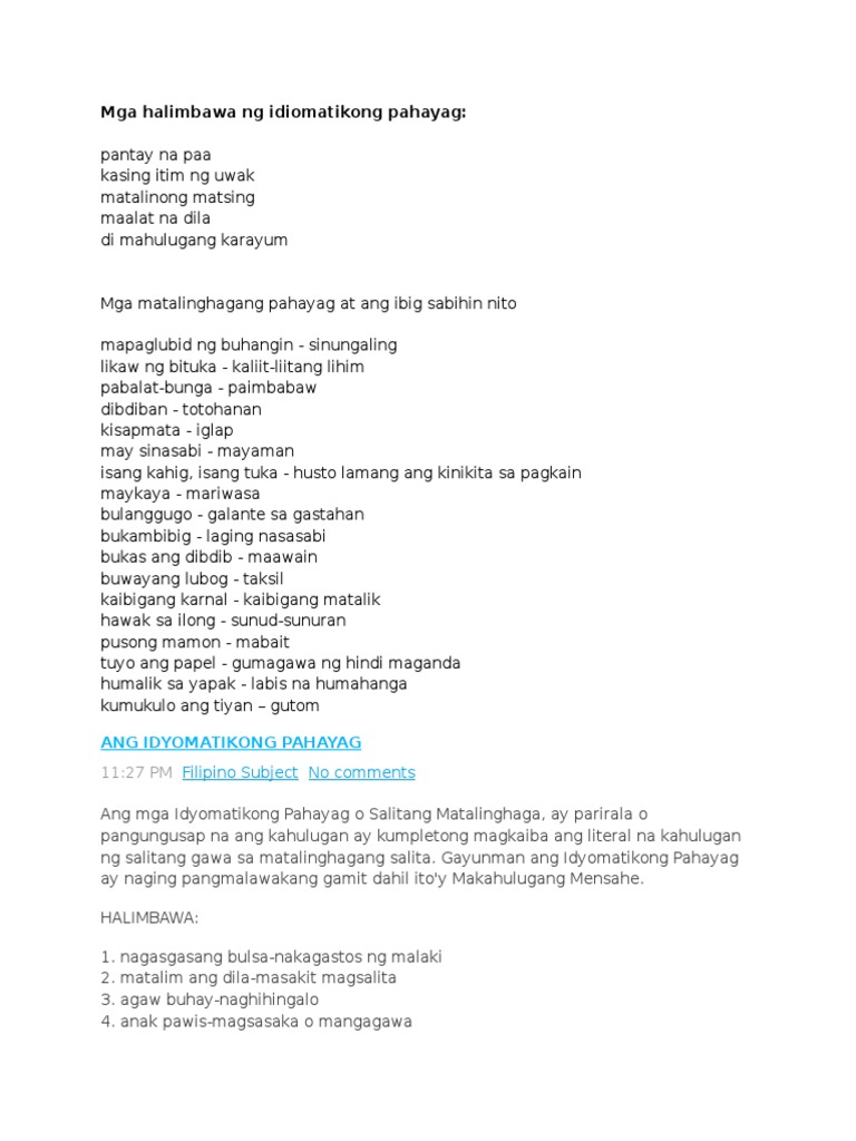 Hikahos sa Buhay Mahirap. Filipino 28102019 1529 nelspas422. IDYOMA Narito ang kahulugan ng idyoma sa Filipino at ang mga halimbawa nito.