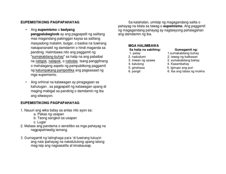 Eupemistikong Pahayag Ano Ito At Mga Halimbawa